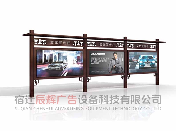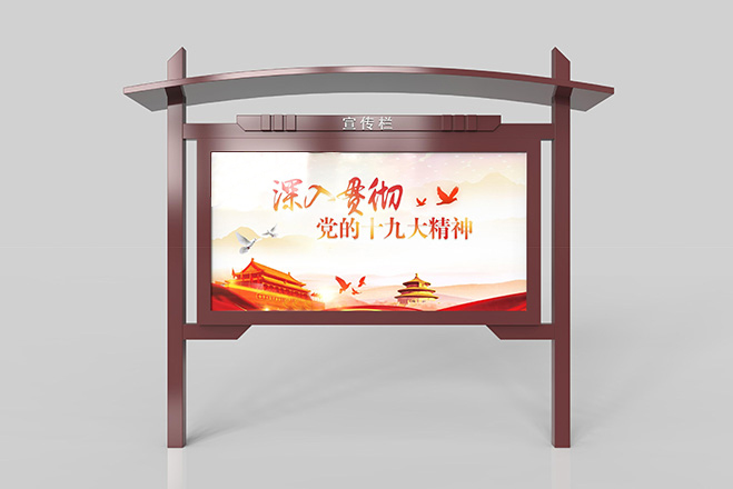 宣傳欄是一種VI應(yīng)用,是組織或企業(yè)單位等進(jìn)行自我宣傳的有效手段,常被應(yīng)用于街道,工廠等公共場(chǎng)所;一般采用不銹鋼為框架,鋼化玻璃或者耐力板為面板,鋁合金為頂棚,面板可以打開(kāi)更換宣傳畫(huà)面?,F(xiàn)如今,宣傳欄廣泛應(yīng)用于學(xué)校、小區(qū)、會(huì)議館、展廳等各個(gè)場(chǎng)地。