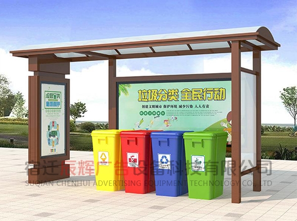 垃圾分類亭一般放在小區(qū)或者公共的地方集合垃圾之用。同樣的材料也可制成配電房、報(bào)亭、崗?fù)?、景區(qū)休息室等。宿遷辰輝廣告設(shè)備科技有限公司,我們的產(chǎn)品豐富多元化,應(yīng)用場(chǎng)景廣泛,也可以根據(jù)客戶的需要來(lái)圖定做。